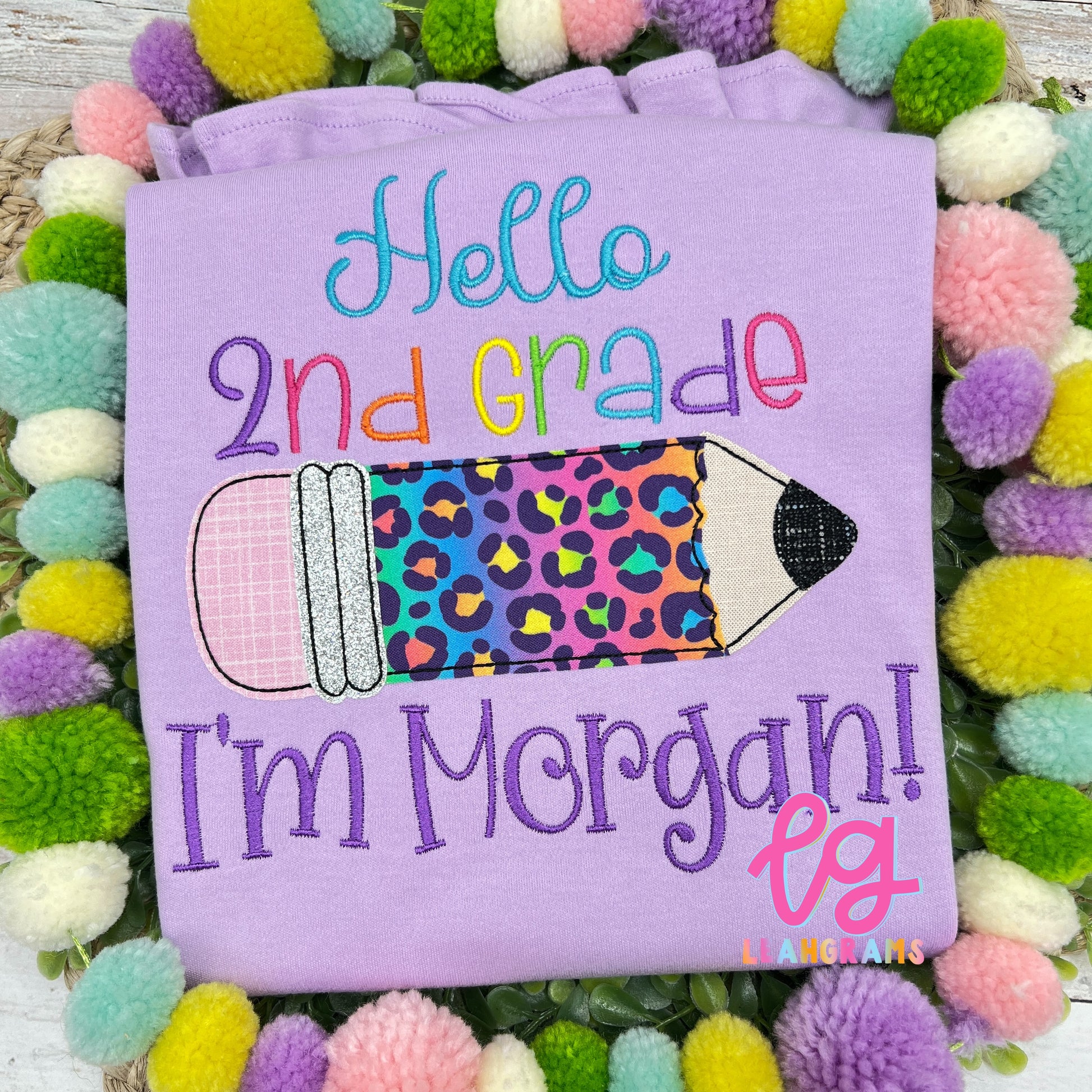 Hello (Grade), I’m (Name) appliqué pencil Shirt