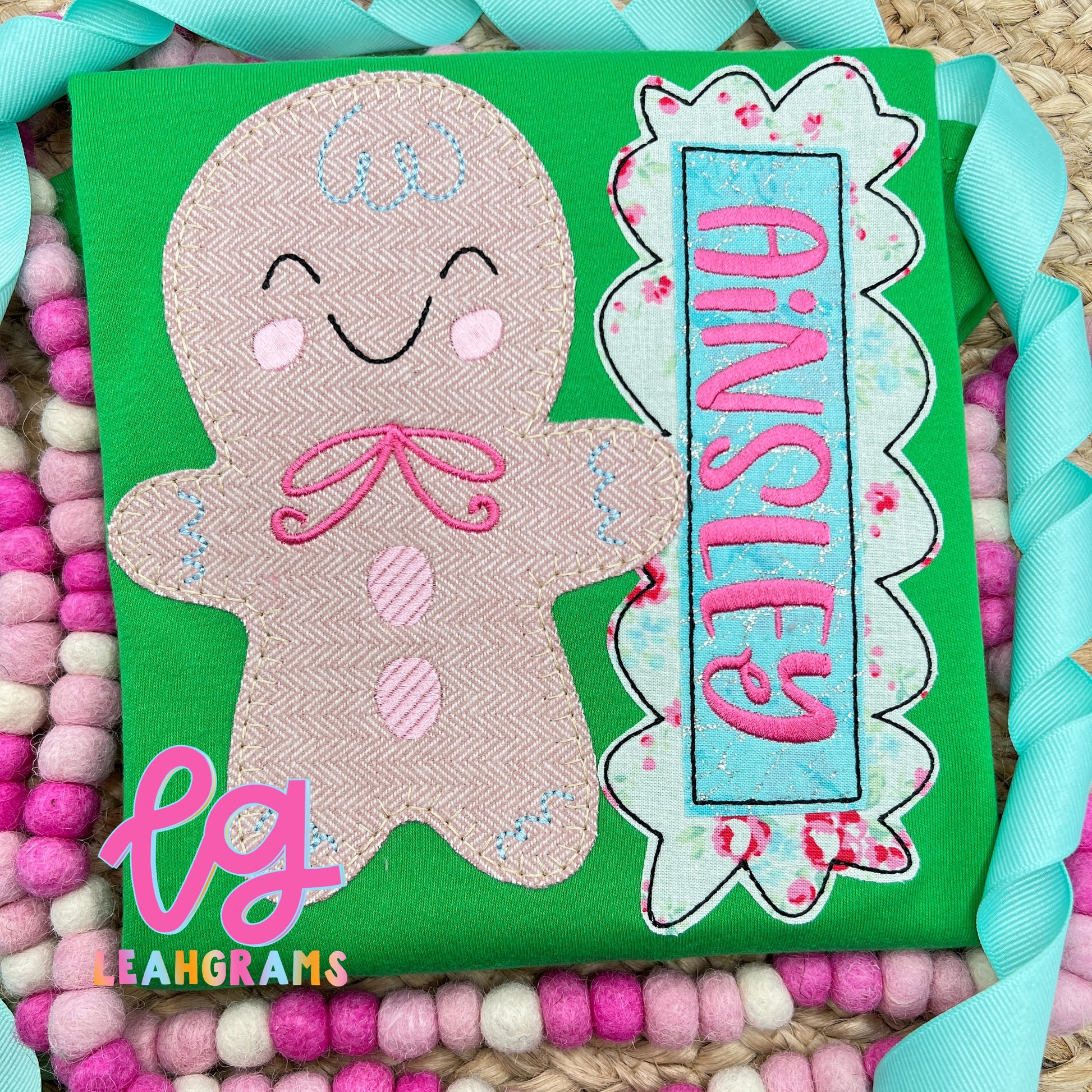 Rosy-Cheeked Gingerbread with Name Applique Shirt