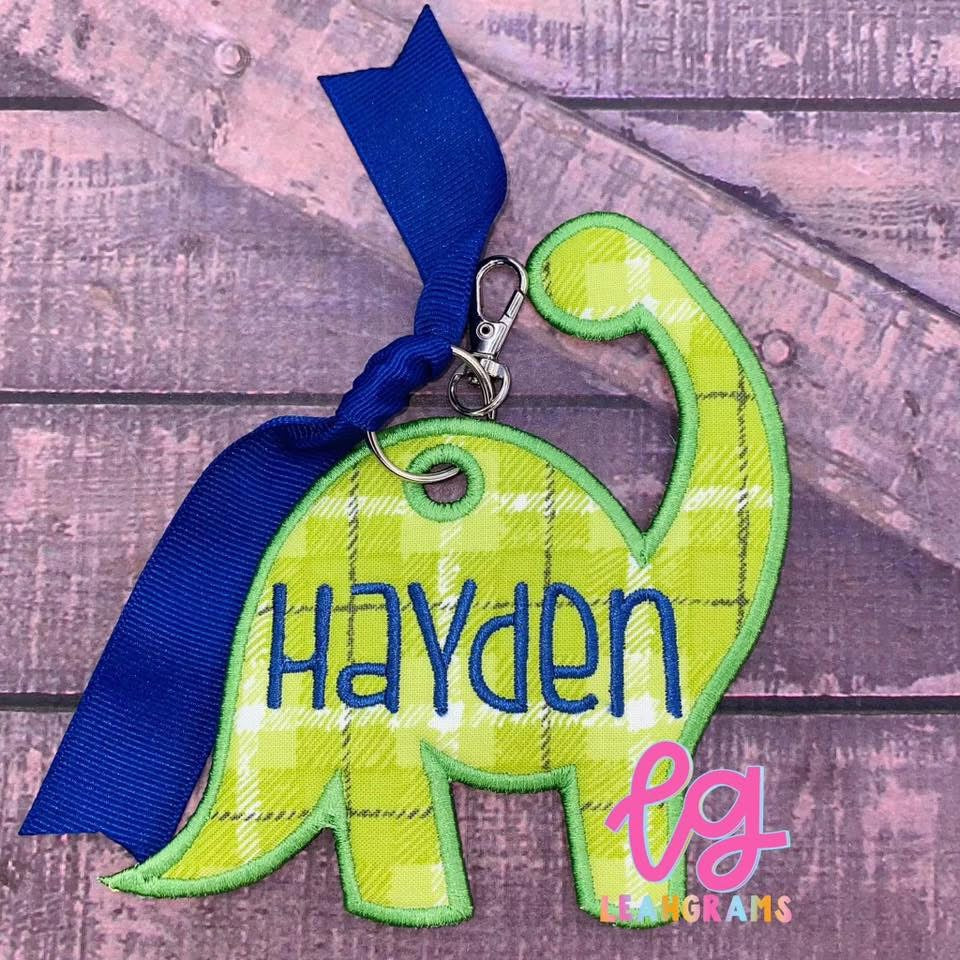Introducing our Dino Bag Tag, the perfect accessory for any bag! Each tag is custom made to match your style and comes with a keyring for easy attachment. Complete with a cute ribbon, this bag tag adds a touch of charm to your belongings. Say goodbye to boring luggage, backpacks, diaper bags etc with our Dino Bag Tag.