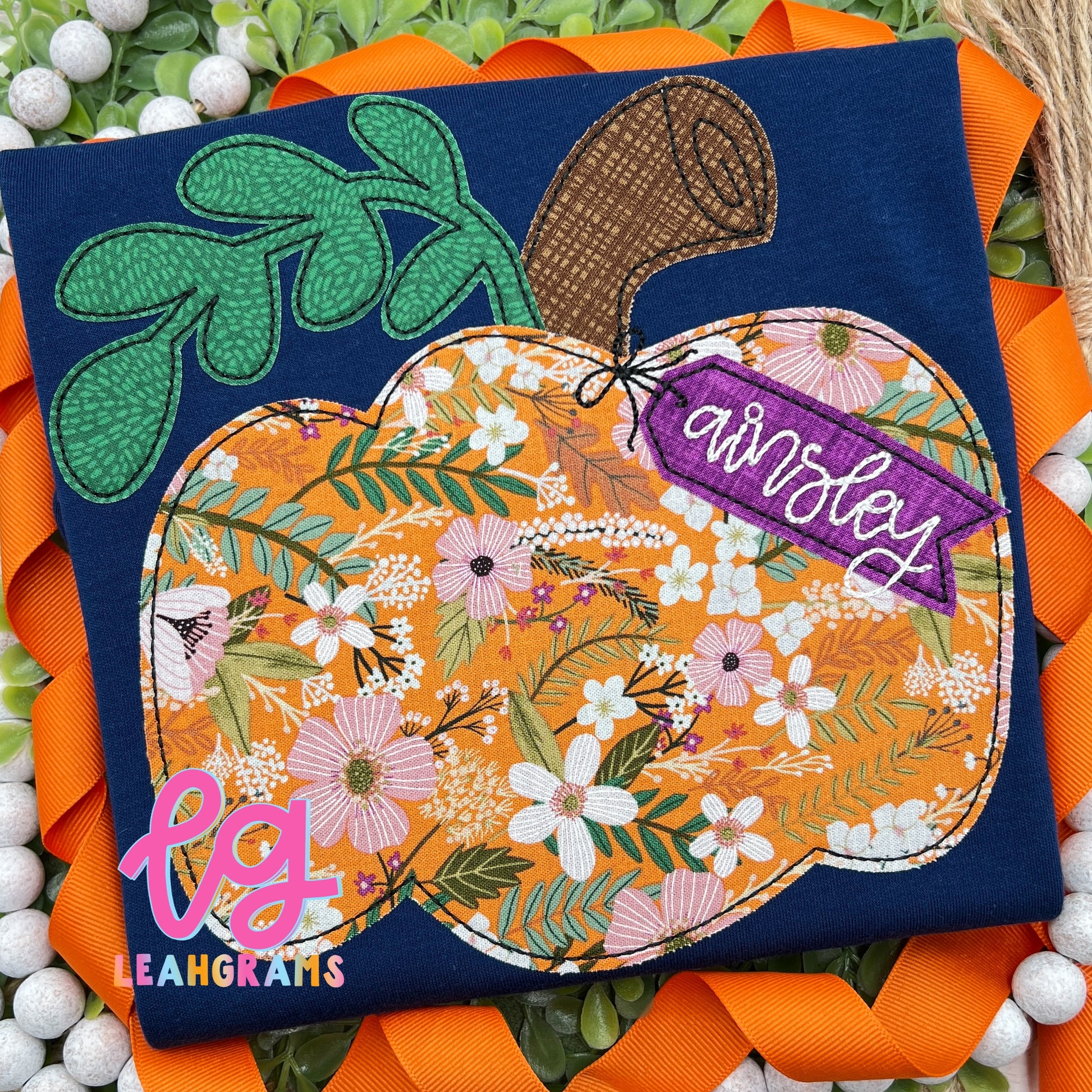 Pumpkin Appliqué Name Tag shirt